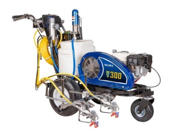 V300 Linjemålningsmaskiner är idealiska för medelstora till stora vägmarkeringsentreprenörer som kräver en jämn målningshastighet. Hela enheten är självgående med ett dubbelt hydraulsystem, vilket gör att entreprenörer kan stå på en plattform och köra enheten medan de målar.