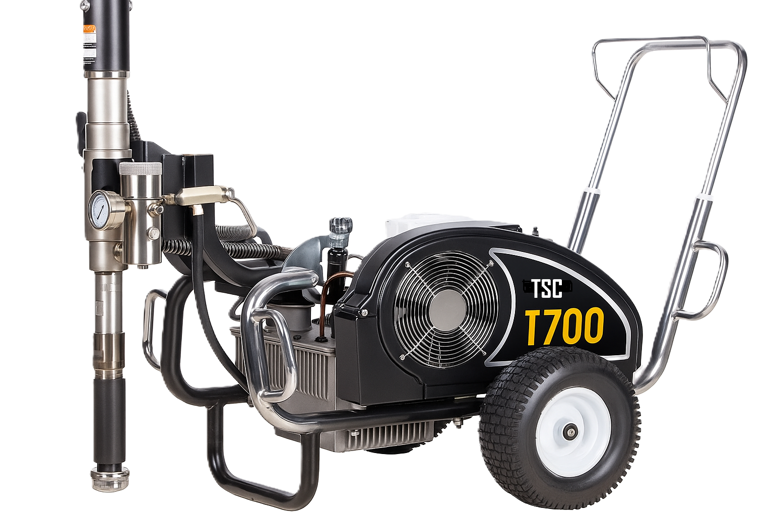 TSC T700 drivs av en kraftfull hydraulisk kolvpump. Den är idealisk för material med hög viskositet, användning av flera sprutpistoler samtidigt och arbete på höga höjder.